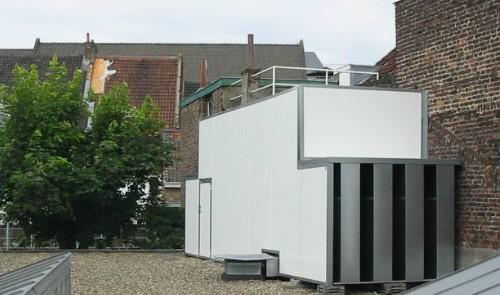 Omkasting met geïntegreerde coulissedempers rondom airco-units