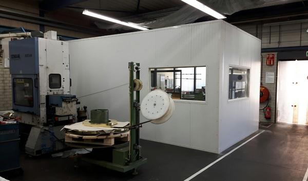 Afscherming rondom een aantal werkplekken binnen een perserij.