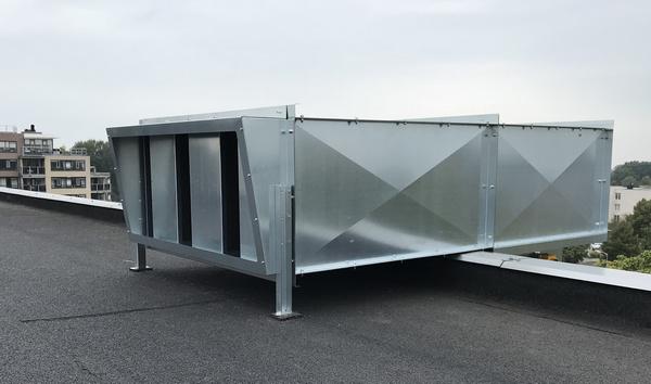 Aansluitstuk met coulissedemper op een afzuiging bij een zorgcentrum