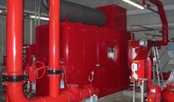 Omkasting van pompset (dieselmotor en pomp) van een sprinklerinstallatie