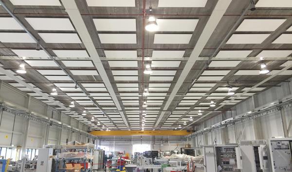 Twee nieuwbouw hallen (l x b x h) 76 x 25 x 8 meter voorzien van elk 230 AcoustiWing (