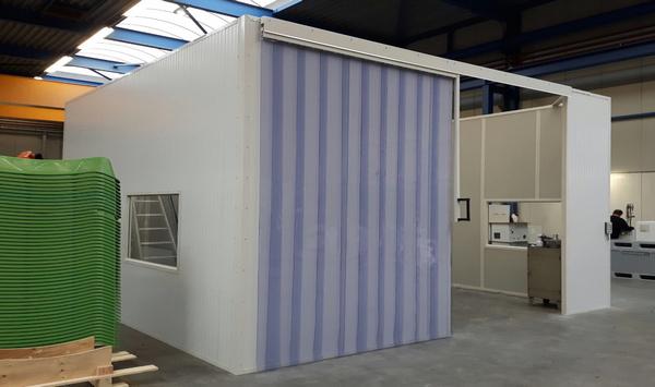 Voorzien van schuivend strokengordijn t.b.v. plaatsen en uitnemen product